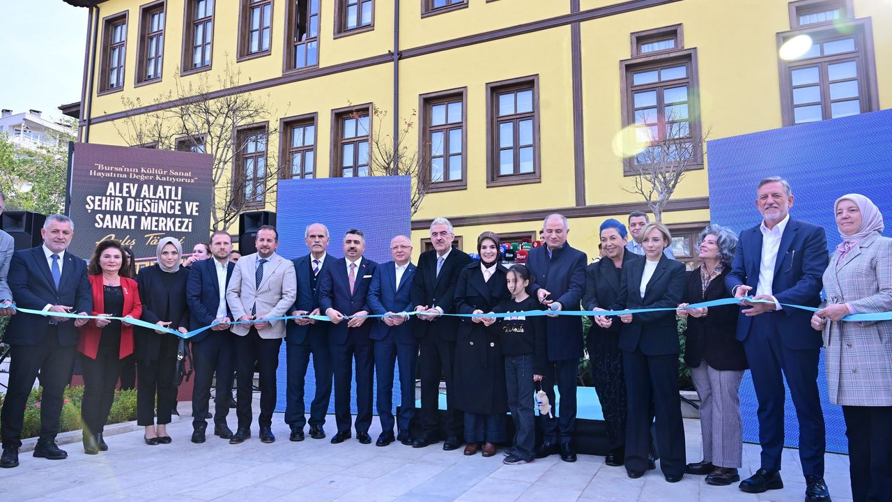 Yıldırım Belediyesi’nin, ilçeye kazandırdığı Alev Alatlı Şehir Düşünce ve Sanat Merkezi düzenlenen törenle hizmete açıldı. Yıldırım Belediye Başkanı Oktay Yılmaz’ın ev sahipliğinde düzenlenen açılışa; Aile ve Sosyal Hizmetler Bakanı Mahinur Özdemir Göktaş, AK Parti Genel Başkan Vekili ve Bursa Milletvekili Efkan Ala, Bursa Valisi Erol Ayyıldız, AK Parti Bursa milletvekilleri Emine Yavuz Gözgeç, Refik Özen, Ayhan Salman, Ahmet Kılıç, Yıldırım Kaymakamı Metin Esen, Üsküdar Kaymakamı Adem Yazıcı, AK Parti Yerel Yönetimler Başkan Yardımcısı Recep Altepe, AK Parti İl Başkanı Davut Gürkan, Alev Alatlı’nın kızı Funda Aktan, Osman Fevzi Efendinin torunu Şükufe Gökçen,Kestel Belediye Başkanı Ferhat Erol, Bursa Kültür Varlıklarını Koruma Kurulu Müdürü Erdal Çetindağ, Bursa Emniyet Müdürü Kadir Gökçe, Bursa Teknik Üniversitesi Rektörü, Prof. Dr. Naci Çağlar, AK Parti Yıldırım İlçe Başkanı İrfan Akkaya, AK Parti Osmangazi İlçe Başkanı Adnan Kurtuluş, AK Parti Nilüfer İlçe Başkanı Furkan Alparslan, Gemlik Belediye Başkanı Şükrü Deviren, Bursa Ticaret ve Sanayi Odası Başkanı İbrahim Burkay, Aile ve Sosyal Hizmetler İl Müdürü Faruk Uysal, Karaağaç Mahalle Muhtarı Sema Pamukçular, akademisyenler, STK temsilcileri ve vatandaşlar katıldı.