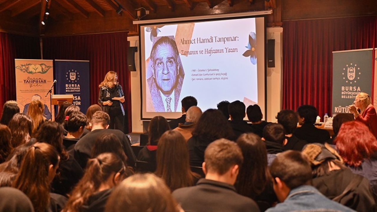 Bursa Büyükşehir Belediyesi Kültür ve Sosyal İşler Dairesi Başkanlığı Kütüphaneler Şube Müdürlüğü tarafından Şehir Kütüphanesi’nde ‘Tanpınar’ın İzinde: Mitlerin Modern Yankısı’ söyleşisi gerçekleştirildi.