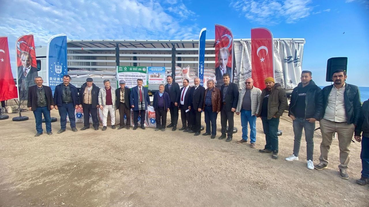 Yüzde 100 hibeli kaba yem desteğinden yararlanan üreticiler, her zaman yanlarında olan Bursa Büyükşehir Belediye Başkanı Mustafa Bozbey'e teşekkür etti.