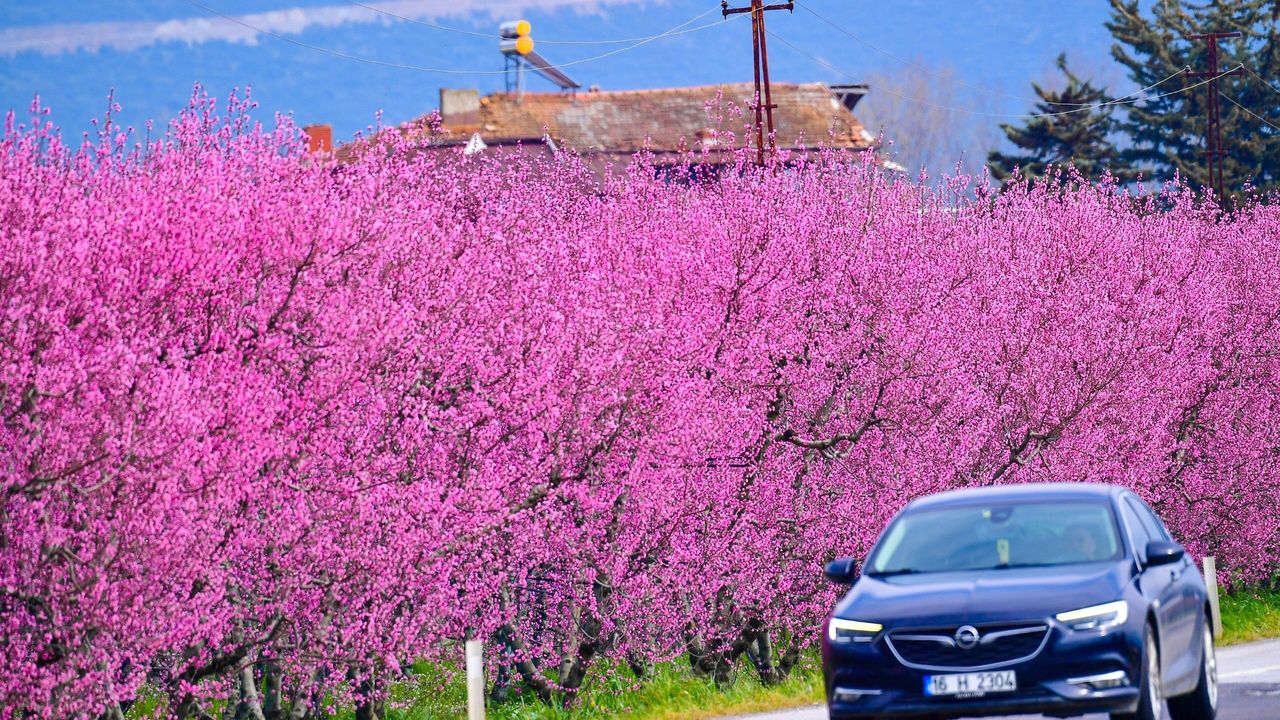 Bursa'nın İznik ilçesinde ilkbaharın gelişiyle birlikte meyve bahçeleri adeta renk cümbüşüne dönüştü. Özellikle şeftali ağaçlarının açan pembe-beyaz çiçekleri, doğaseverlere görsel bir şölen sunarken bölgeyi ziyaret edenleri kendine hayran bırakıyor.