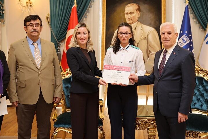 ‘Eğitim Destekli İstihdam Projesi’ kapsamında düzenlenen ‘tramvay/metro sürücülüğü eğitimlerini başarıyla tamamlayan 10 kadına, Bursa Büyükşehir Belediye Başkanı Mustafa Bozbey tarafından belgeleri verildi.