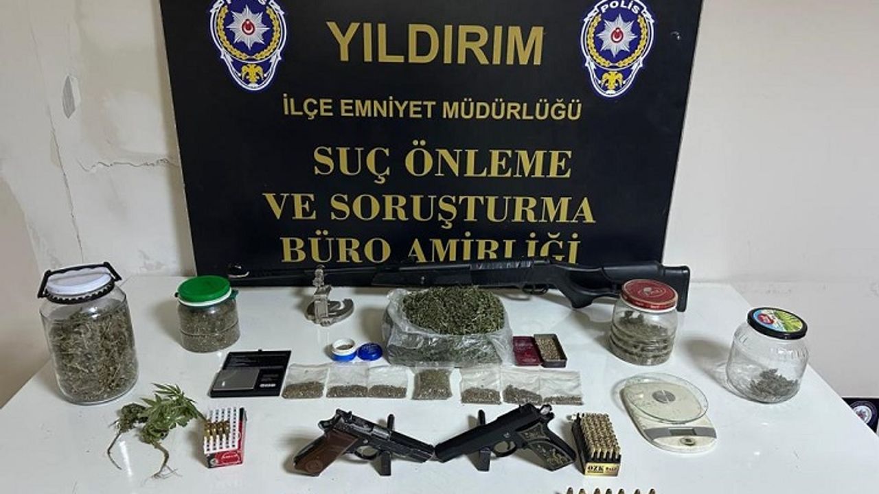Yıldırım İlçe Emniyet Müdürlüğü Suç Önleme Ve Soruşturma (SÖS) Büro Amirliği ekipleri, uyuşturucu ticareti yapıldığı ve evde silah bulunduğu yönündeki ihbarlar üzerine harekete geçti. Şüphelilerin delilleri yok etmesini önlemek amacıyla ekipler, kapıyı dilenci kılığında çalarak dikkat çekmeden kapının açılmasını sağladı. Kapının açılmasıyla birlikte ekipler içeri girerek operasyonu başlattı.