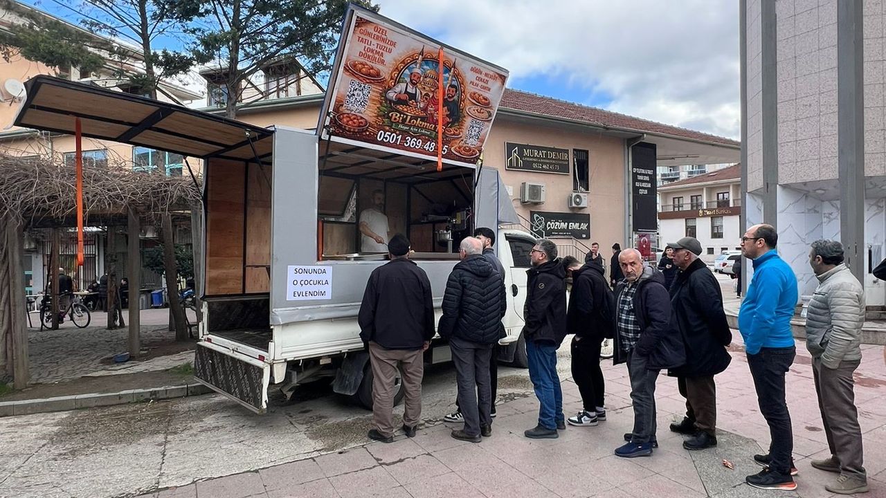 İnegöl Sani Konukoğlu Camii önünde kurulan lokma aracında vatandaşlara ikramda bulunulurken, lokma aracına asılan "Sonunda o çocukla evlendim" yazısı dikkat çekti. Lokma dağıtımı çevredeki vatandaşlar tarafından ilgiyle karşılandı.