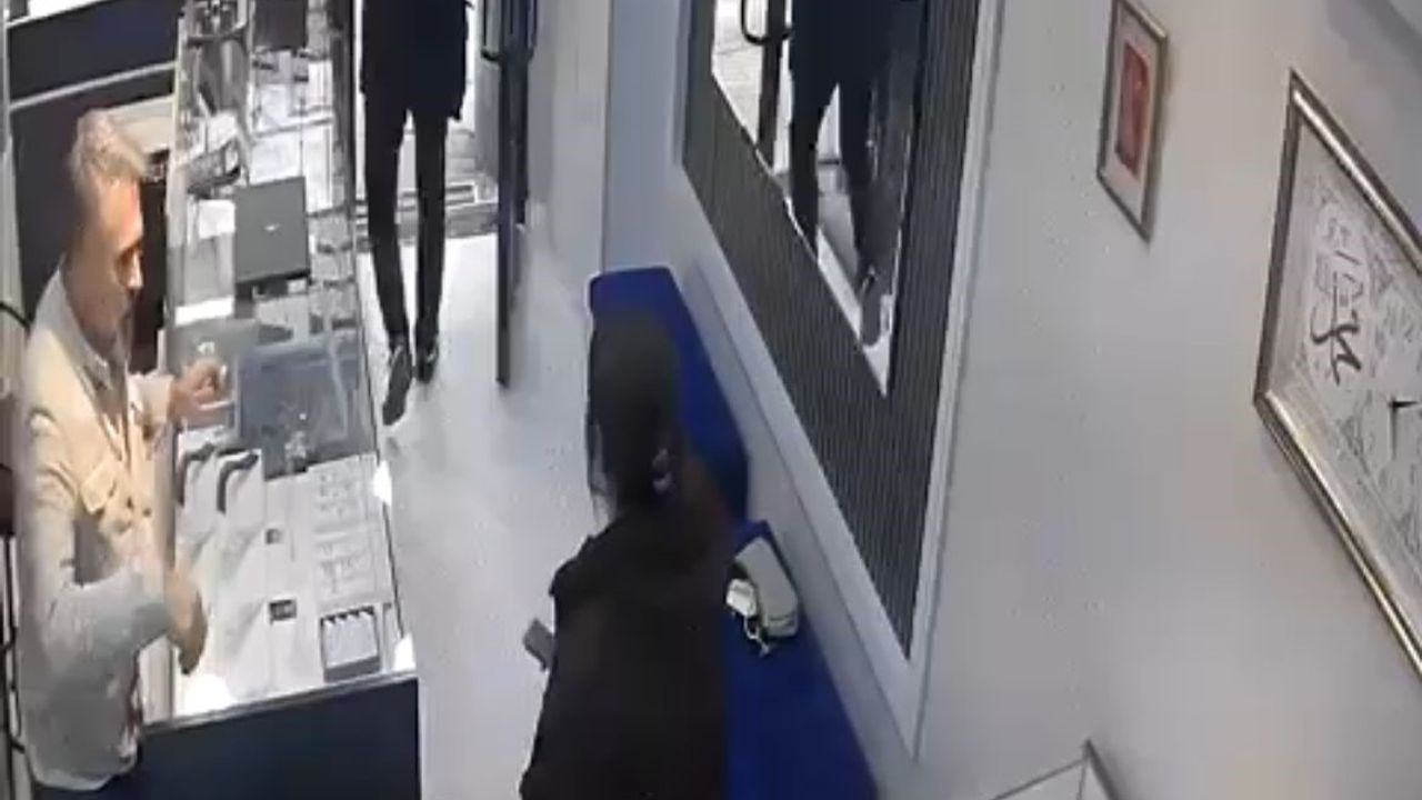 Bursa'da kuyumcuya soygun için gelen silahlı bir şüpheli, kararsız hareketleriyle kuyumcuya silah çekti. Paniğe kapılan soyguncu koşarak dükkandan kaçtı. İlginç anlar kameraya anbean yansıdı.