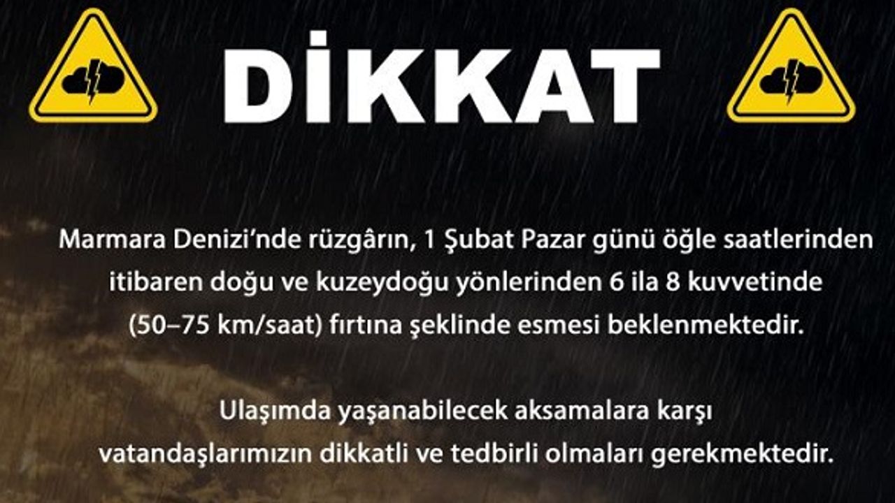 Yetkililer, beklenen fırtına nedeniyle deniz ulaşımında aksamalar yaşanabileceğini belirterek vatandaşların dikkatli ve tedbirli olmaları konusunda uyarıda bulundu.