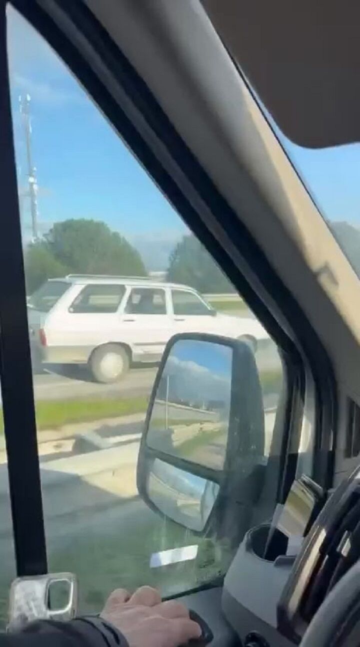 Tehlike saçan araç, aynı istikamette seyreden başka bir otomobildeki vatandaşlar tarafından cep telefonu kamerasıyla görüntülendi. Görüntülerde aracın uzun süre ters şeritte ilerlediği görüldü.