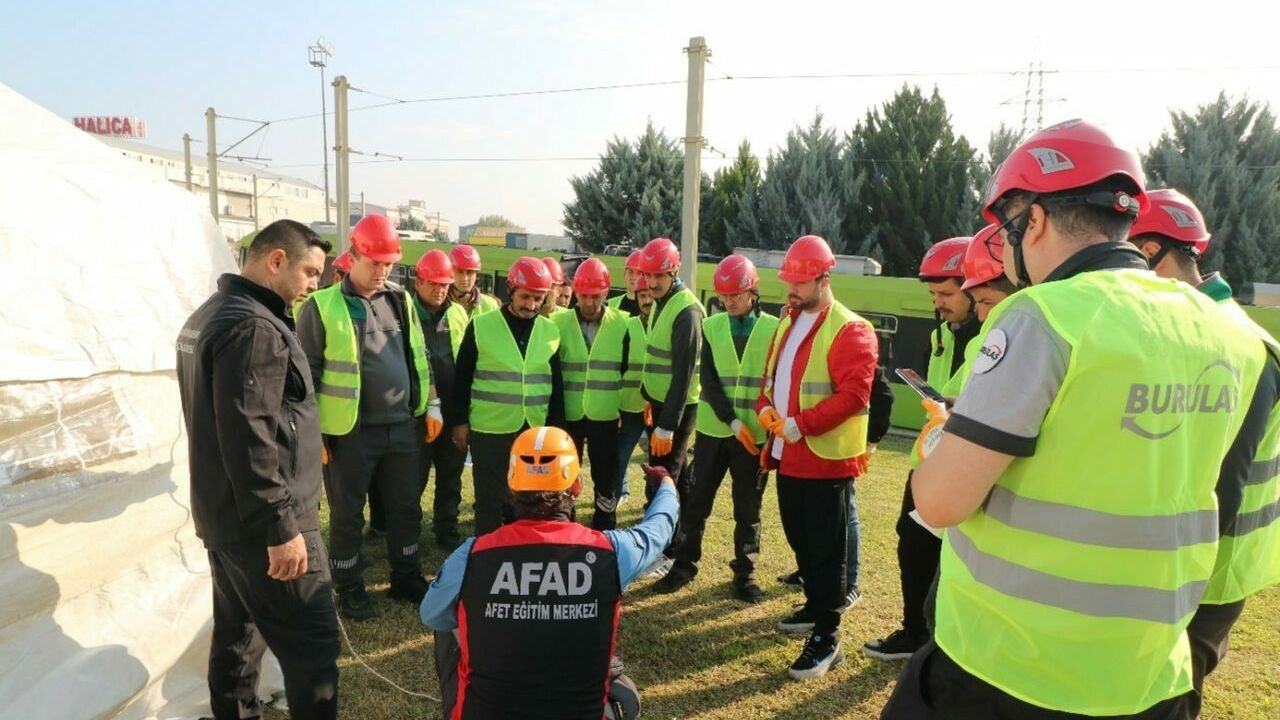 Afet Koordinasyon Merkezi (AKOM) koordinasyonunda yapılan eğitim, AFAD yetkilileri tarafından BURULAŞ hizmet binası bahçesinde gerçekleştirildi. ‘Afet ve Acil Durumlarda Barınma Akreditasyonu’ kapsamındaki eğitimlerde, BURULAŞ personeline afet anında hızlı ve doğru müdahale kabiliyetini artırmaya yönelik farklı türlerdeki çadırların kurulumu, uygun yer seçimi, güvenlik önlemleri ve saha düzeni gibi konularda eğitim verildi. Yapılan uygulamalarda, ekiplerin afet anında barınma alanlarını en verimli şekilde oluşturabilmeleri için gerekli bilgiler aktarıldı.