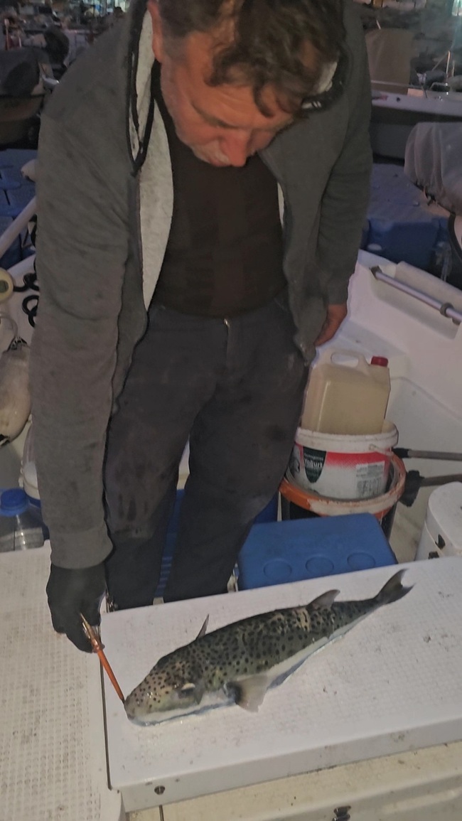 Benekli balon balığı; yenildiğinde ölümcül zehir içeren, hızla çoğalabilen, diğer balık türleri ve ekosistem için ciddi tehdit oluşturan bir istilacı tür olarak biliniyor. Mevzuat gereği, bu türün karaya çıkarılması yasak. Ömer Pişman da gerekli prosedürlere uygun şekilde balığı imha ederek denize iade etti.
