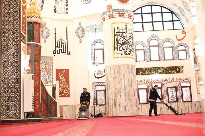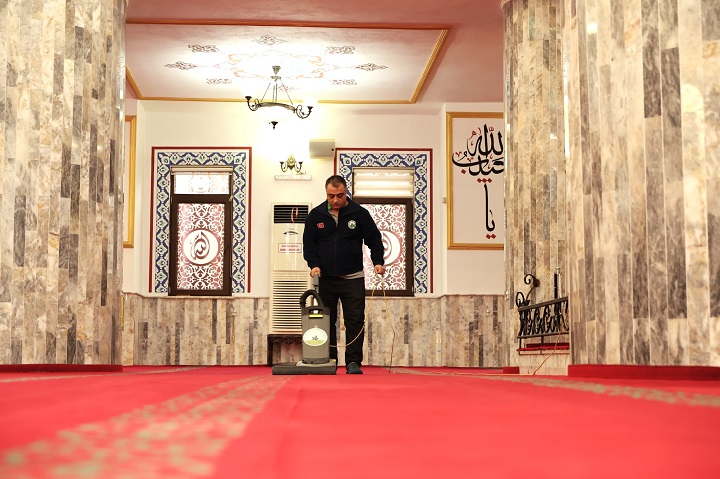 Osmangazi Belediyesi Temizlik İşleri Müdürlüğü tarafından ilçe genelindeki tüm camilerde yürütülen temizlik çalışması kapsamında camilerdeki halılar, halı yıkama makinesi ve deterjanlı suyla yıkanırken; pencere, kapı, mihrap, minber, kürsü ile ayakkabılıklar büyük bir titizlikle siliniyor. Yüksek teknolojiye sahip makinelerle yıkanan ibadethane halıları, aynı zamanda bakterilere karşı da dezenfekte ediliyor. Yıkandıktan sonra güçlü vakum sistemiyle kirli suyun çekilerek tahliye edildiği uygulamada ibadethaneler, daha hijyenik bir hale geliyor. Ayrıca cami içleri, şadırvanları ve ortak kullanım alanları ekipler tarafından dezenfekte ediliyor.