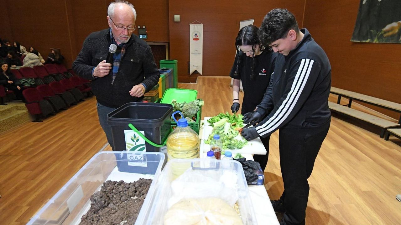 Şehit Erol Olçok Mesleki ve Teknik Anadolu Lisesi’nde düzenlenen seminere; Osmangazi Belediyesi Gazi Tarım Genel Müdürü Arca Atay, Osmangazi Belediyesi İklim Değişikliği ve Sıfır Atık Müdürü Rüveyşa Burça Sütcüoğlu, belediye meclis üyeleri ile çok sayıda öğrenci katılım gösterdi. Programda konuşan Rüveyşa Burça Sütcüoğlu, doğal kaynakların sınırlı olduğuna dikkat çekerek artan nüfusla birlikte atık miktarının da hızla yükseldiğini belirtti. Bunun yanı sıra seminer kapsamında Sütcüoğlu; atıkların kaynağında ayrıştırılmasının çevreye katkıları, gıda israfının önlenmesinin ekonomik ve ekolojik önemi ile sürdürülebilir tüketim alışkanlıklarının günlük yaşama nasıl entegre edilebileceği konularında öğrencilere detaylı bilgiler verdi.