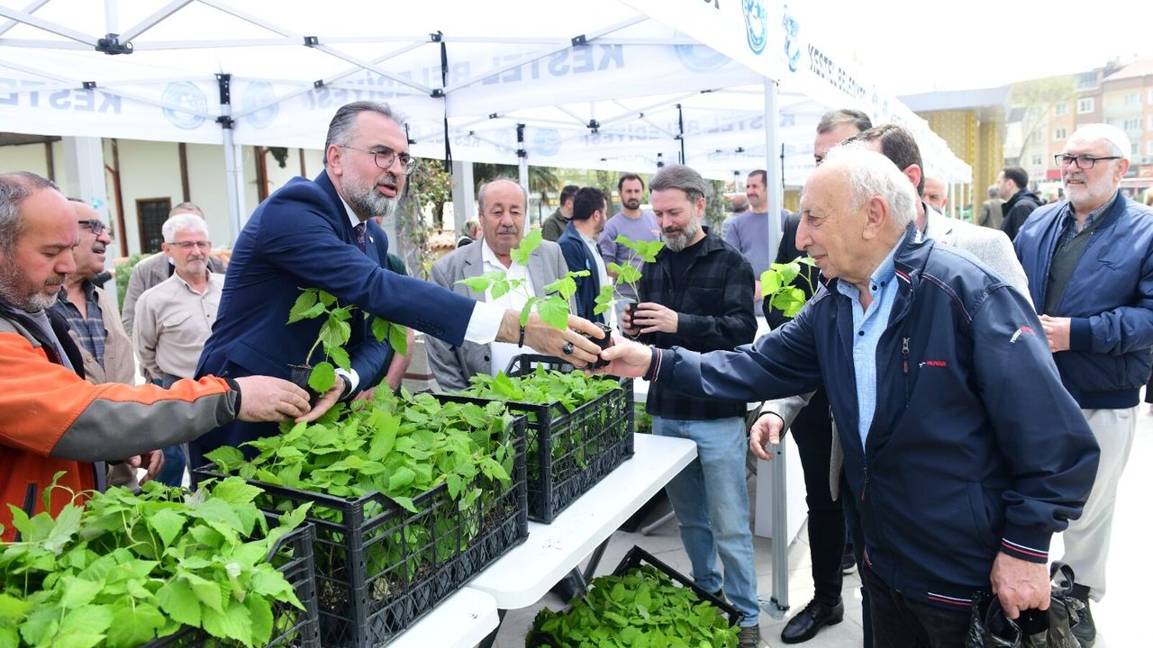 Meydan Kestel’de düzenlenen fidan teslim töreni; Kestel Belediye Başkanı Ferhat Erol’un ev sahipliğinde, Kestel Kaymakamı Recep Öztürk, AK Parti Bursa İl Başkanı Davut Gürkan ve çok sayıda üreticinin katılımıyla gerçekleştirildi.