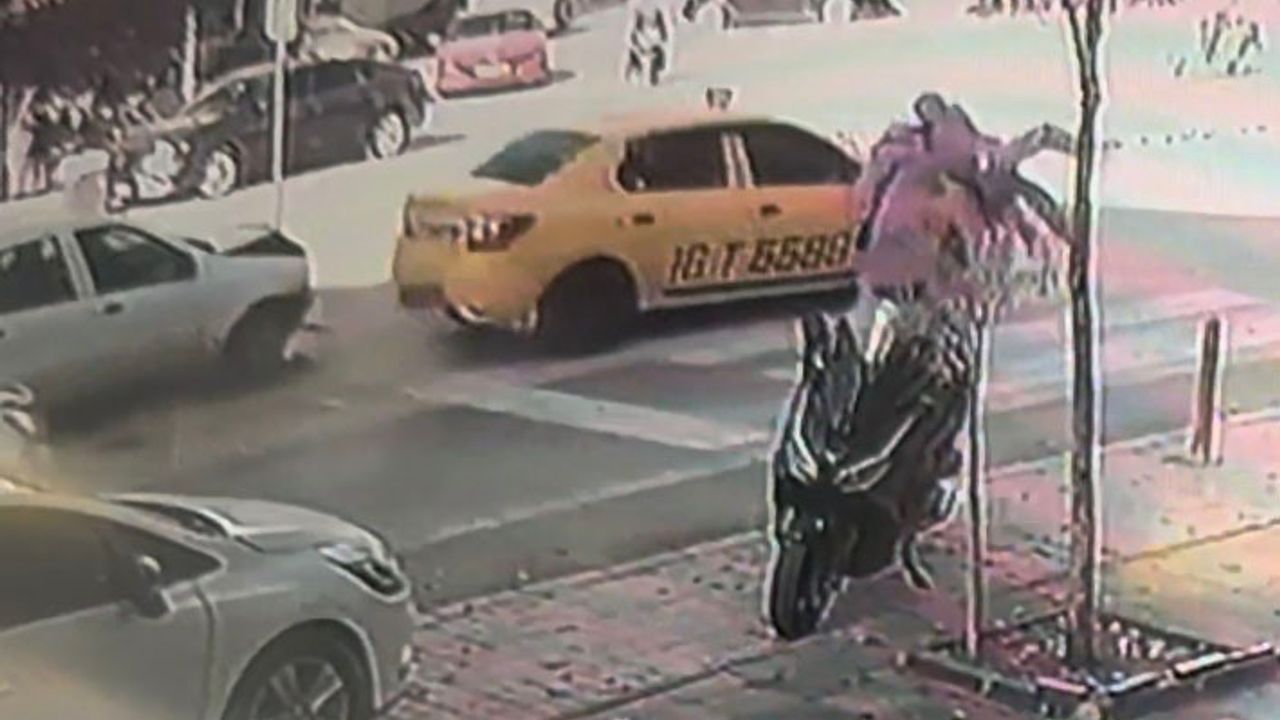 Çarpmanın etkisiyle taksi de anne ve bebeğine çarptı. Yaşanan o korku dolu onlar saniye saniye güvenlik kameralarına yansıdı.