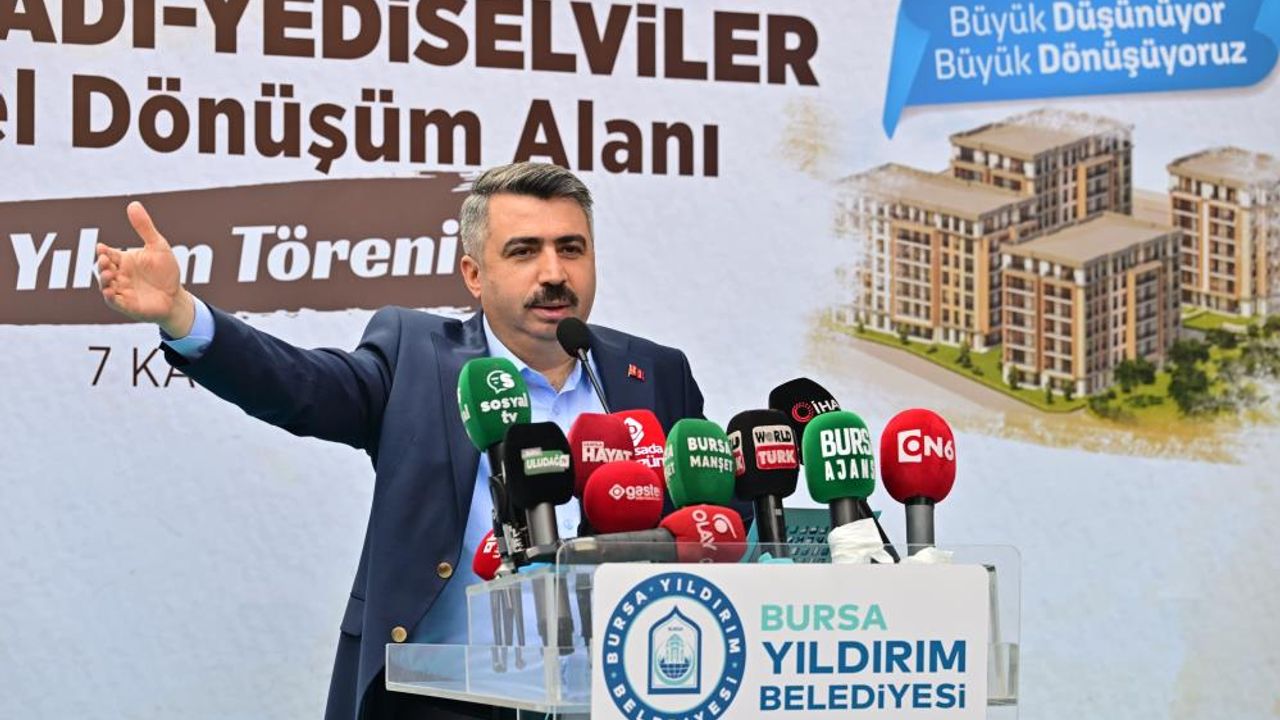 Davutkadı-Yediselviler Kentsel Dönüşüm Projesi 2. Etap Yıkım Töreni’ne; Yıldırım Belediye Başkanı Oktay Yılmaz başta olmak üzere, Yıldırım Kaymakamı Metin Esen, AK Parti Yıldırım İlçe Başkanı İrfan Akkaya, İlçe Milli Eğitim Müdürü Mustafa Sevinç, Yediselviler Mahalle Muhtarı Salih Solakoğulları, hak sahipleri ve vatandaşlar katıldı. Yıkım töreninde yaptığı konuşmada; Yıldırım’da depreme dayanıksız yapı stoğunu dönüştürmek, modern ve güvenli yaşam alanları inşa etmek için çalıştıklarını vurgulayan Belediye Başkanı Oktay Yılmaz; "Kentsel dönüşümü yalnızca teknik bir mesele olarak değil; geleceğimize karşı taşıdığımız büyük bir sorumluluk olarak görüyoruz. Bu anlayışla, ilçemizin farklı bölgelerinde hayata geçirdiğimiz projelerle bu dönem toplam 30 bin konutun yenilenmesini hedefliyoruz" ifadelerini kullandı.