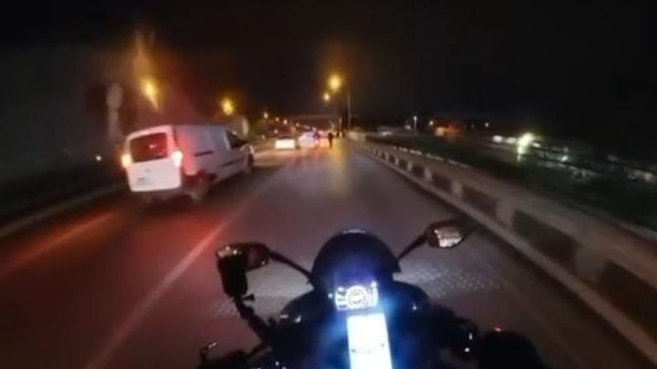 Ani manevra yapmak zorunda kalan motosiklet sürücüsü kısa süreli tehlike yaşarken, olayda herhangi bir çarpışma meydana gelmedi. Yaşanan riskli anlar çevredeki vatandaşların da dikkatini çekti.